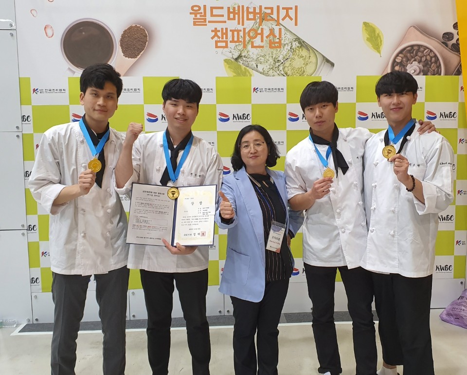 지난 25일부터 2까지 4일간 서울 양재동 aT센터 2전시장과 각 대학에서 분산 개최한 ‘2020 대한민국 국제요리&제과경연대회’가 열렸다. 통일부, 농림축산식품부, 교육부, 행정안전부, 보건복지부, 해양수산부, 환경부, 고용노동부, 중소벤처기업부, 서울특별시, 식품의약품안전처, 농촌진흥청, aT한국농수산식품유통공사, 수협, 한국산업인력공단 등 정부 부처 등 27개 유관단체가 후원하고 중국, 일본 등에서 2000여 명이 출전한 국제규모의 요리경연대회다. 이번 대회 라이브 경연대회에 출전한 유원대 호텔외식조리학과 유원대팀(박운식, 박신후, 임규진, 이용혁)이 최고의 영예인 대상을 수상했다. 이들은 영동산 블루베리 와인을 활용해 만든 갈릭마요 요거트를 곁들여 독창적인 맛의 돼지 갈비찜을 선보이며 심사위원들의 극찬을 받았다. 망고퓨레&흑임자 소스 새우테린과 웰링턴 스타일의 돼지 갈비찜, 초콜릿 말차 무스로 구성한 3코스 메뉴로 라이브경연 대상에 이어 통일부 장관상도 추가 수상했다. U1 2팀(송영헌, 윤근주, 이상연, 노형주)도 유자 머랭소스를 곁들인 새우 새면말이 튀김과 영동와인소스를 곁들인 전복과 꾸리살 약밥 롤라드, 딸기 판나코타 메뉴를 선보여 금상을 받았다. 이번 대회에 총 10명이 출전한 유원대는 3코스 라이브 경연과 전시 부문에서 참가자 전원이 금상을 받고, 대상과 통일부 장관상을 수상하는 진기록을 세웠다. 특히 유원대팀은 충북 영동지역의 특산품인 일라이트 돈육과 블루베리, 곶감, 포도, 와인 등을 활용한 작품을 선보이며 지역사회의 우수 농산물을 널리 홍보하는 데에도 일조했다는 평가를 받았다. 이번 대회에서 학생들을 지도한 허영욱 교수는 “매년 각종 요리대회에서 우수한 성적을 거두게 된 것은 유원대학교의 특화 프로그램인 비교과 활동 지원과 학과의 자랑인 브랜드 셰프 양성 교육의 결과”라고 소감을 밝혔다