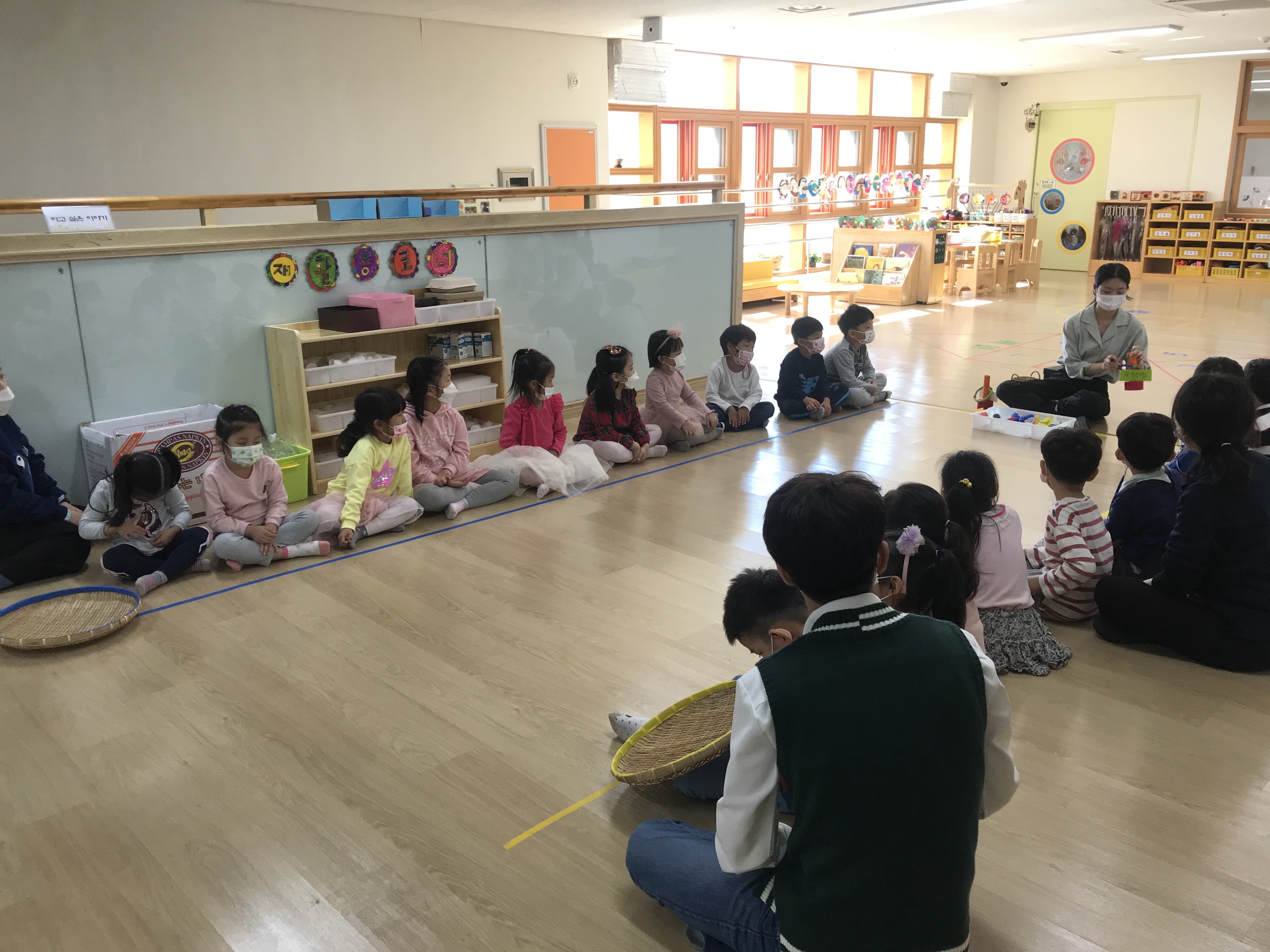 4학년들의 학교현장실습 모습입니다. 학교현장실습은 유아교사로서의 자질과 능력을 배양하고, 대학에서 배운 이론 및 실무를 교육현장에 적용해 보는 기회로_ 현장수업을 관찰하고 수업을 직접 담당해 봄으로써 교사로서의 자질과 품성을 기르며 교직에 대한 자신감과 긍지를 갖는 기회가 되었을 것입니다. 4월 중 4주에 걸쳐 매주 금요일마다 주 1회씩 진행된 사전실습을 토대로 본 실습은 이후 4주(20일)동안 진행되었고, 2주차에 부분수업으로_ 이야기 나누기(가을에 볼 수 있는 곤충), 신체(탈춤놀이), 음악(인절미와 총각김치), 동화(거울 소동), 음악(독도는 우리땅), 동극(커다란 순무), 게임(송편을 바구니에 넣어요), 미술(청사초롱을 만들어요), 동화(팥죽할머니와 호랑이) 등이 전개되었습니다.