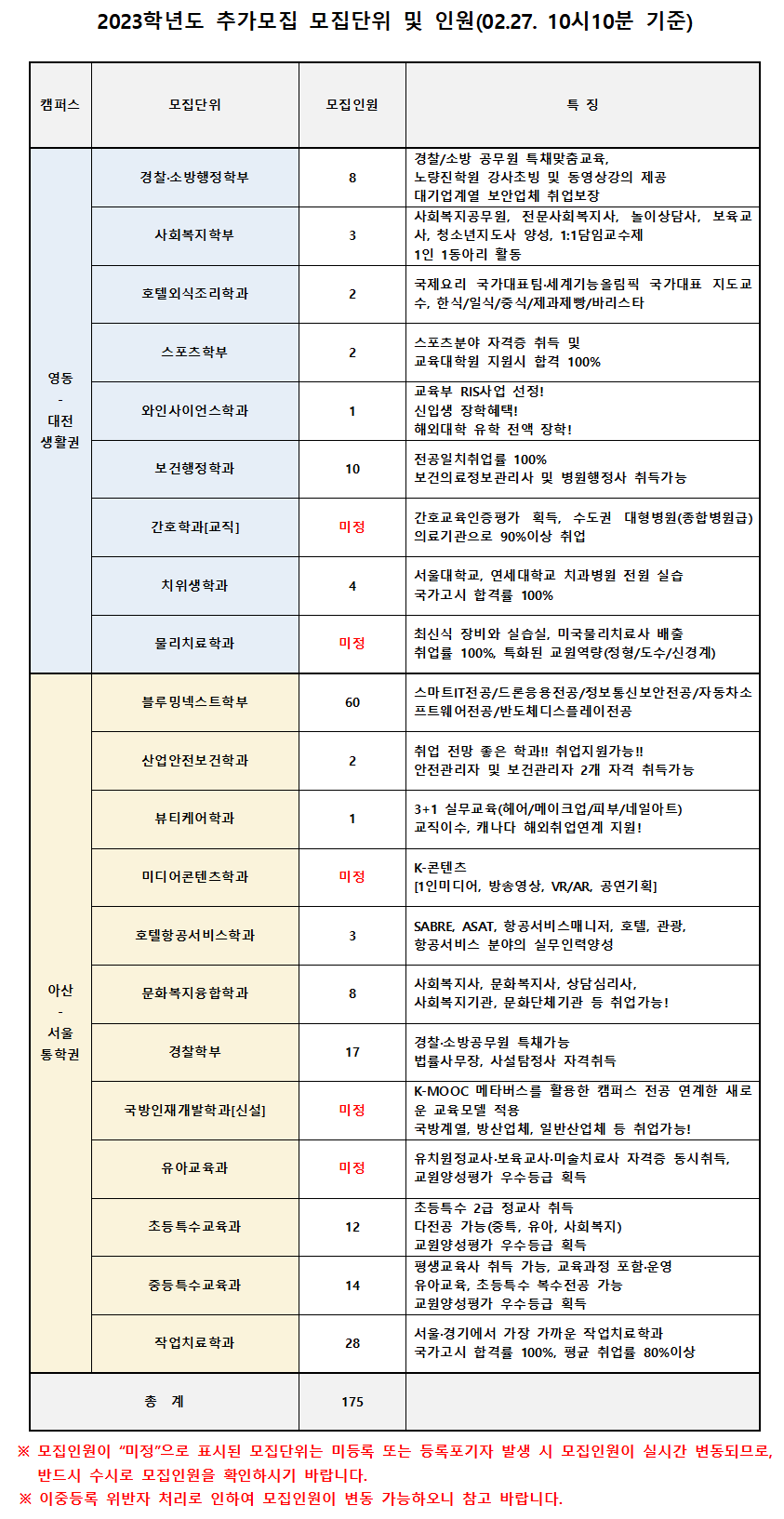 "영동캠퍼스(대전생활권) ↔ 아산캠퍼스(서울통학권) 상호전과 가능"